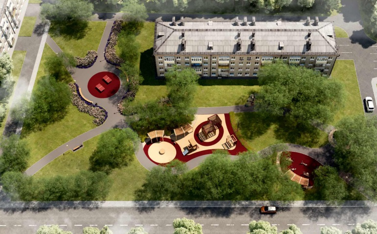 Обновят общественное пространство вблизи домов № 64, 68, 70 на улице Социалистической. Победителю торгов предстоит провести демонтажные работы, обновить асфальтовое и плиточное покрытие, смонтировать наружное освещение и подсветку, установить видеонаблюдение и малые архитектурные формы, а также провести озеленение.