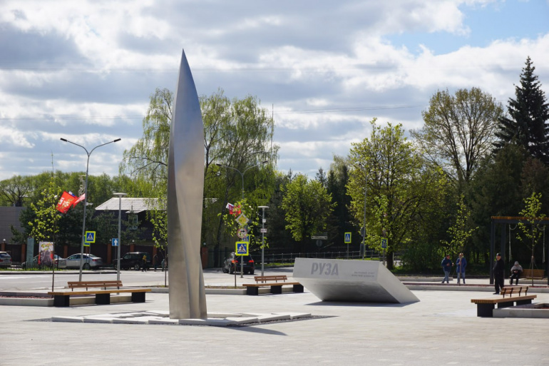 Накануне 9 Мая на центральной площади Рузы установили стелу «Населённый пункт воинской доблести». Сегодня жители возложили к ней цветы в память о тех, кто защищал Родину. Монумент высотой 7,6 метра символизирует острие меча, готового защищать, и пламя огня, напоминая о стойкости и несгибаемого духа защитников Отечества.
