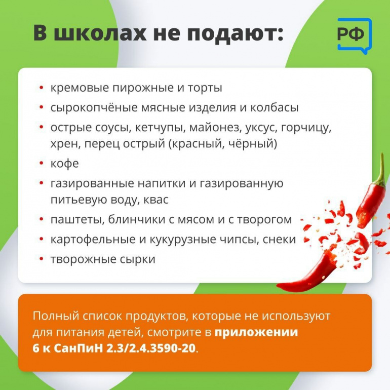 Меню в школьных столовых составляется по санитарным нормам. В нём не должно быть колбас, острых соусов, газировки, чипсов, кремовых десертов и даже блинчиков с мясом.