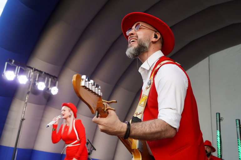 Мероприятие проходило в живописном месте — на берегу реки Москва. Здесь установили сцену, на которой выступили артисты. Гостям раздали символ праздника — ромашки.