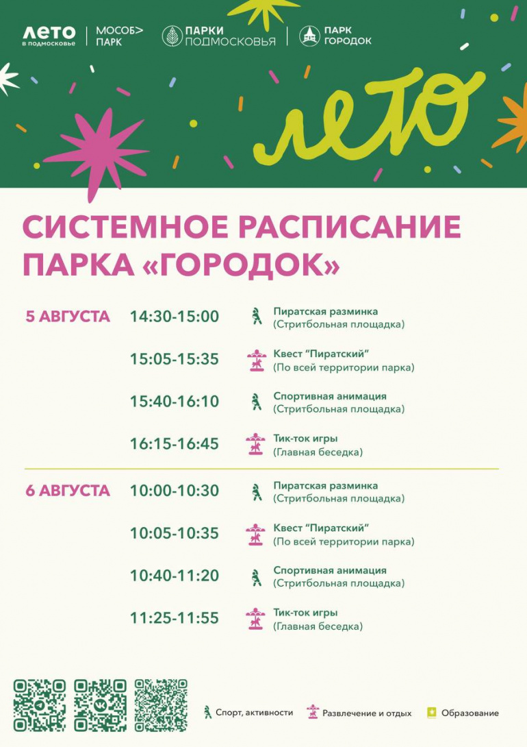 Во вторник, 5 августа, на стритбольной площадке пройдёт пиратская разминка. Затем гости смогут принять участие в квесте, спортивной анимации и тик-ток играх. Такие же развлечения ожидают ружан в среду, а в четверг программу дополнят игротанцами и творческой мастерской. В пятницу клуб «Ярополк» проведёт тренировку, а вечером состоится кинопоказ. Посмотреть фильм под открытым небом можно будет и в субботу.