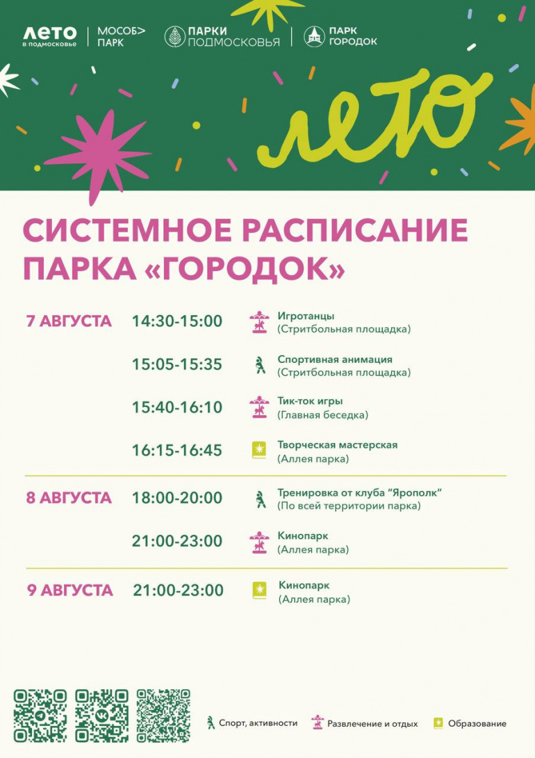 Жителей и гостей Рузского округа приглашают в парк «Городок» на традиционные активности на свежем воздухе. На протяжении пяти дней посетителей ждёт множество развлечений, которые подойдут для всей семьи. Публикуем афишу мероприятий.