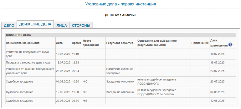 Как следует из картотеки Рузского районного суда, первые два заседания по рассмотрению дела, назначенные на 4 и 12 августа, были отложены из-за болезни Валерия Дородько. Следующее заседание должно состояться 29 августа.