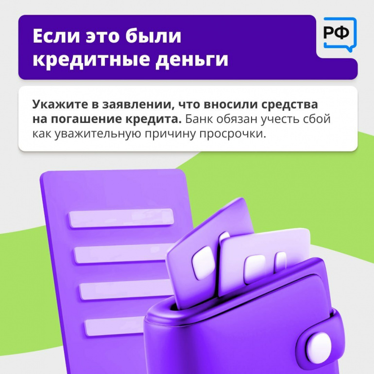 Тогда в заявлении важно указать, что средства вносили на погашение кредита. Банк обязан учесть сбой как уважительную причину просрочки.