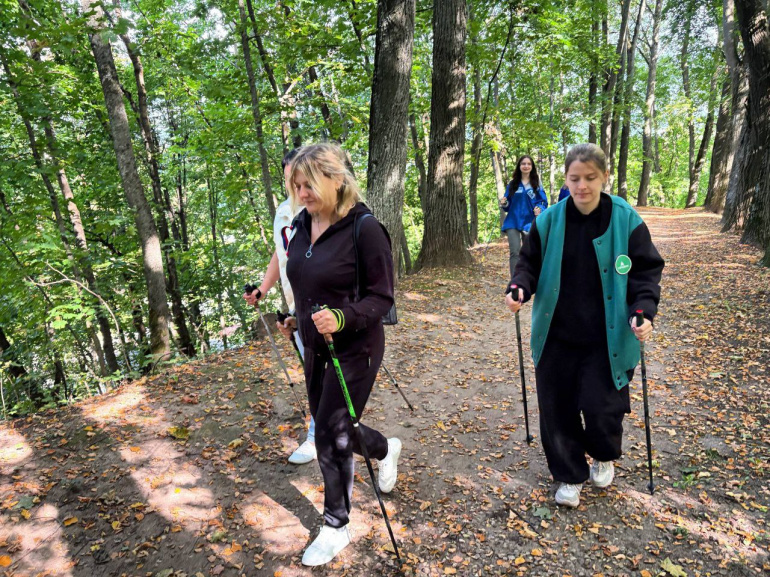Можно было попробовать силы в детской эстафете, шахматах, бочче, скандинавской ходьбе и на открытой тренировке по единоборствам. Особый интерес вызвала разминка «В ритме парка».