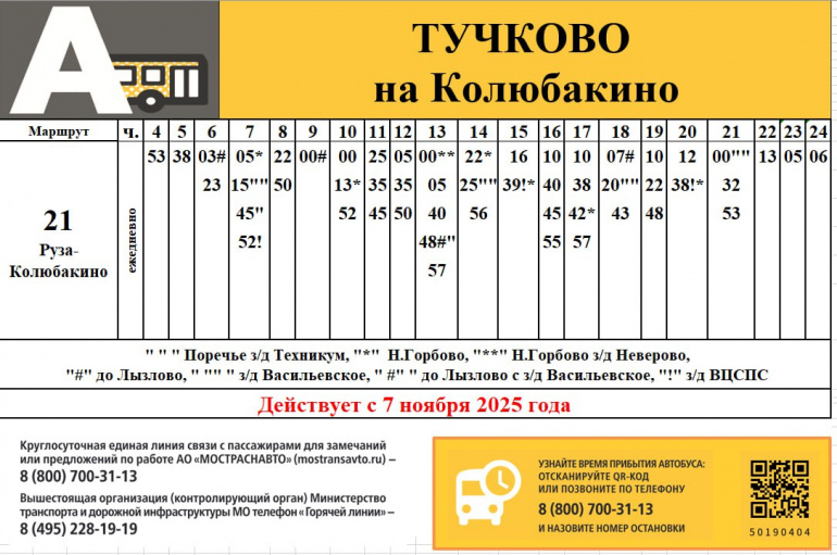 Также с этого дня по маршрутам «Колюбакино — Тучково» и «Тучково — Колюбакино» вновь начнут ходить автобусы.