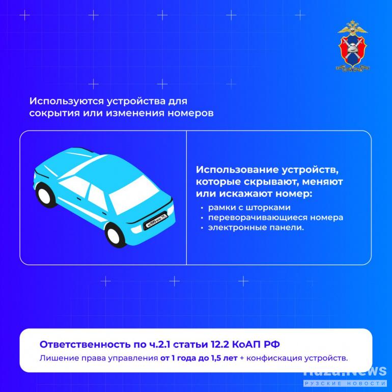 Если водитель использует устройства для сокрытия или изменения номеров, тогда его тоже могут лишить права управления на срок от года до полутора лет. Также конфискуют само устройство.