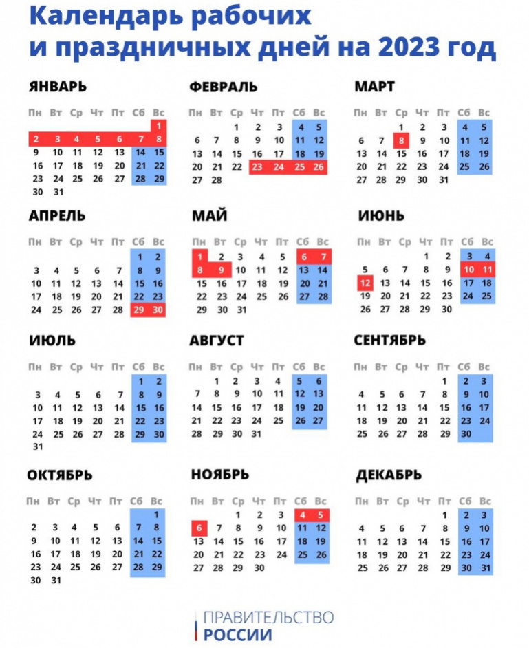 Также в Правительстве России отметили, что новогодние праздники начнутся 31 декабря 2022 года и продлятся до 8 января 2023 года.
