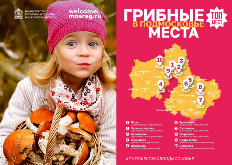 В Министерстве культуры и туризма составили подборку самых грибных мест Подмосковья. Список опубликовали на сайте ведомства.