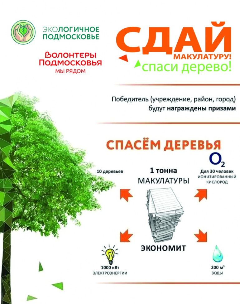 В Подмосковье 18 октября стартует акция по сбору макулатуры на переработку. За призовые места участников будут поощрять ценными призами и даже целой аллеей из деревьев редких пород.